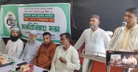 ২৫ মে শনিবার জেলা আওয়ামী লীগের প্রধান কার্যালয়ে আয়োজিত মতবিনিময় সভায় উপস্থিত ছিলেন চেয়ারম্যান পদপ্রার্থী শুসেন চন্দ্র শীলসহ বিভিন্ন মাদ্রাসার অধ্যক্ষ, মসজিদের ইমাম-মুয়াজ্জিন ও ধর্মীয় নেতৃবৃন্দ।